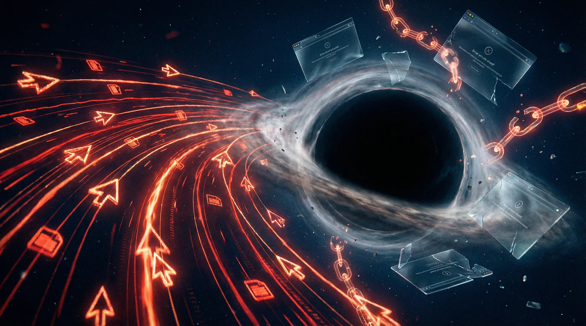 "Dead Internet" spirál, fizetős AI keresés. Organikus forgalom csökkenés: −70–80%. A tartalom ördögi köre: kevesebb eredeti → gyengébb AI.